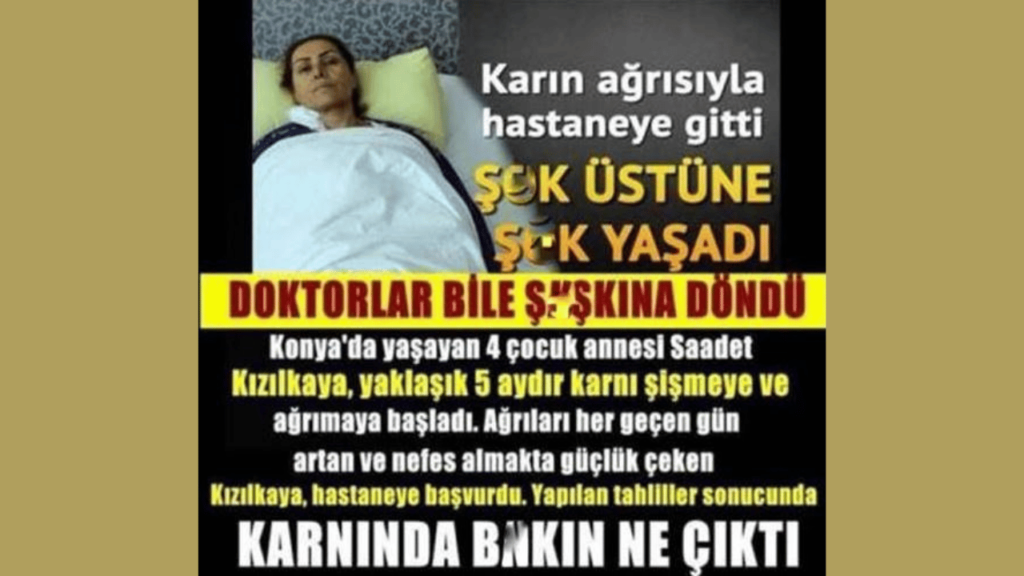 Karın Ağrısıyla Hastaneye Giden Kadın Bakın Hastanede Neyle Karşılaştı? Konya’da yaşayan 4 çocuk annesi Saadet Kızılkaya, yaklaşık 5 aydır karnı şişmeye ve ağrımaya başladı Ağrıları her geçen gün artan ve nefes almakta güçlük çeken Saadet Kızılkaya, hastaneye başvurdu. Başvurdu başvurmasına ama karnım ağrıyor diye doktora giden kadının karnından bakın ne çıktı? Tüm detaylar diğer sayfamızda..